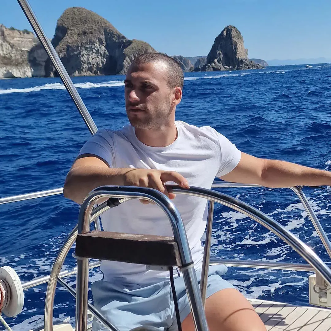 Il mare ha sempre fatto parte della mia vita, negli anni quello che era un interesse è diventato una grande passione e addirittura lavoro: fare lo Skipper. Stare in mare giorno e notte, in qualunque condizione, é per me un’emozione indescrivibile, pura adrenalina. Apprezzo molto il divertimento e la condivisione, andare in barca ti permette di conoscere continuamente persone nuove che in una settimana diventano nuovi amici che sembri conoscere da una vita. Vivere il mare, delle volte ti fa stare in ansia, altre volte ti rende felice, altre ancora deluso per un vento che non arriva mai, ma quando scendi a terra vorresti già tornare in mezzo alle onde.