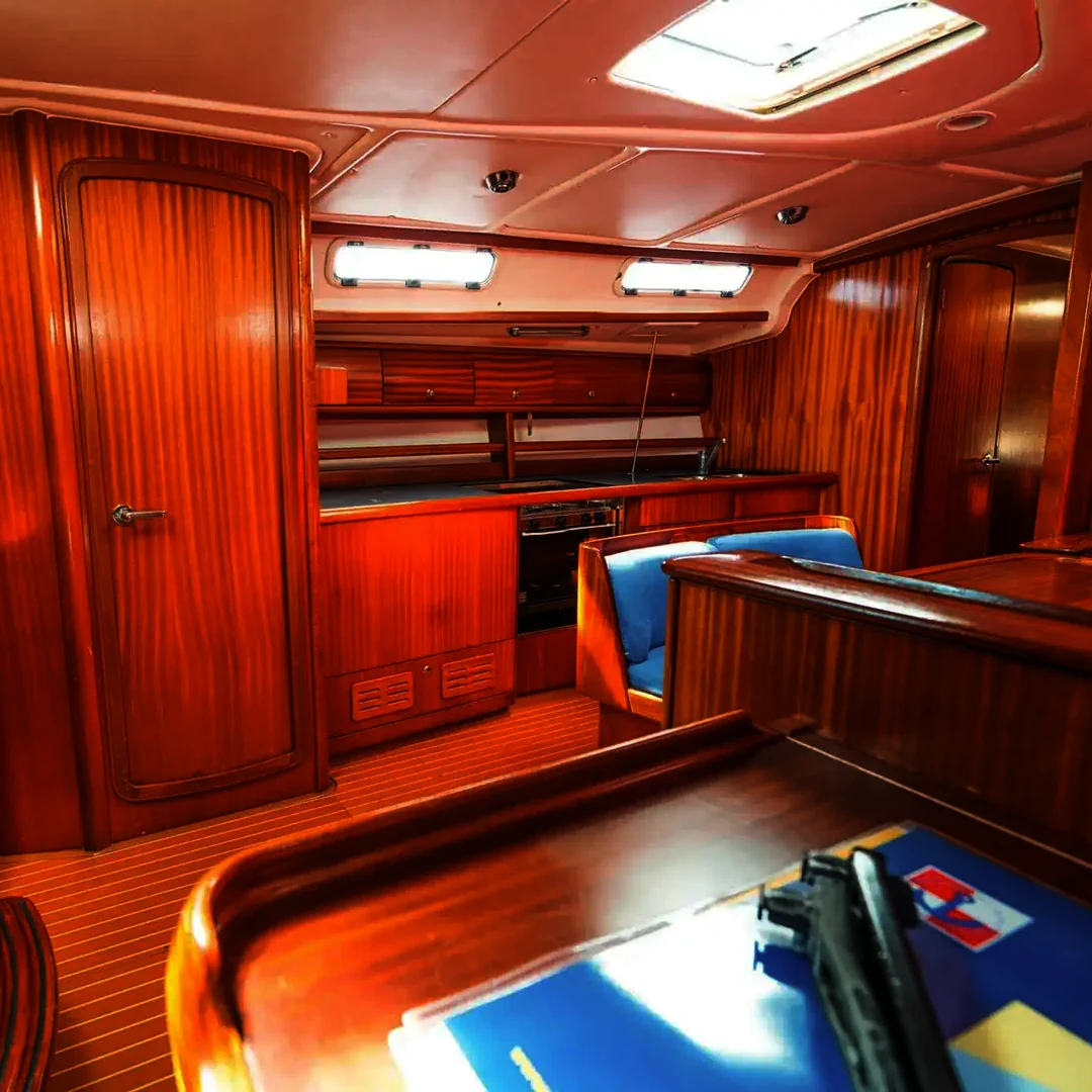 Con i suoi quasi 14 metri e una carena che garantisce stabilità, Sanbosò è una barca spaziosa, solida e marina. È un’imbarcazione dotata di ogni comfort per la vita di bordo, con equipaggiamento completo ideale per vivere al meglio l’esperienza in rada.
