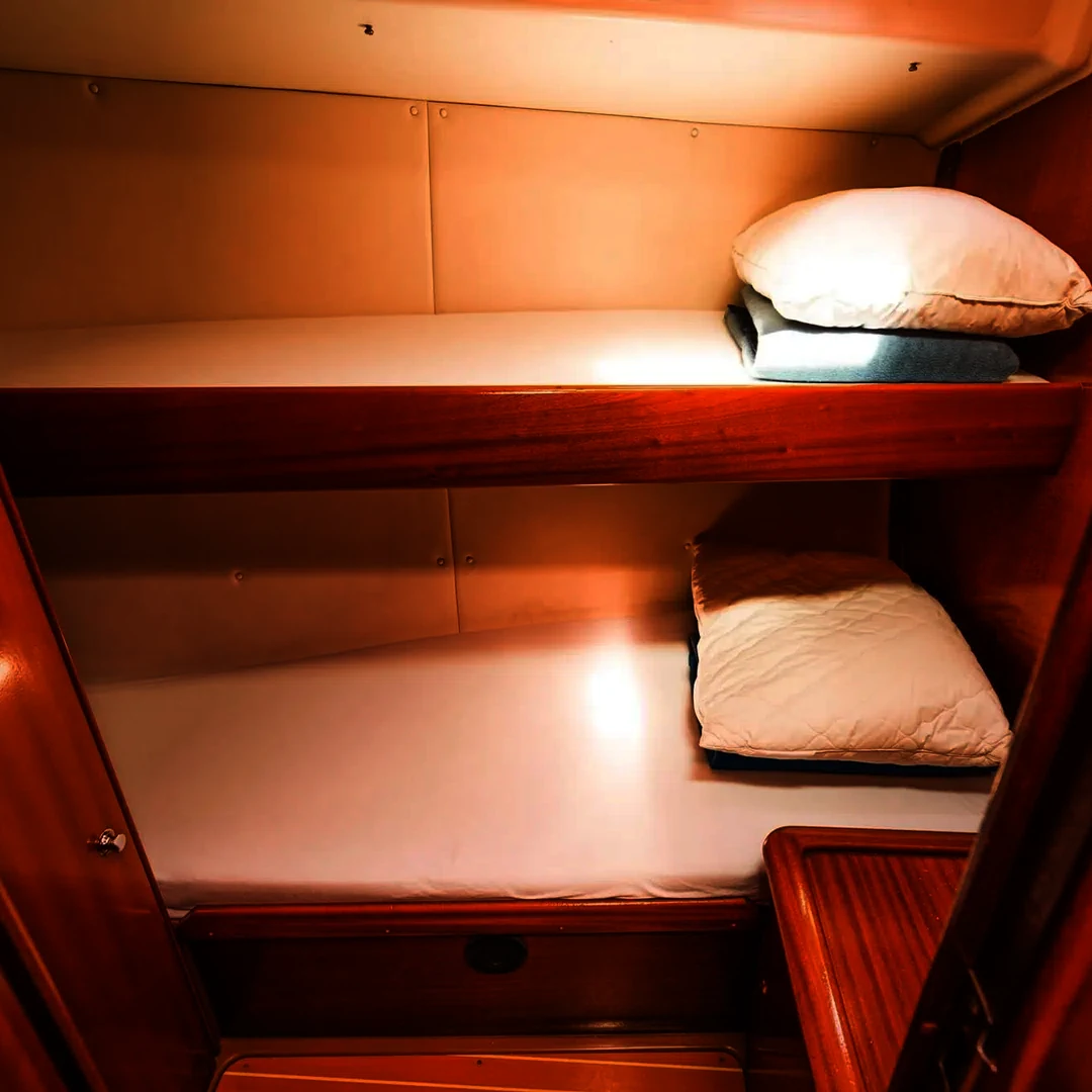 Con i suoi volumi generosi e una configurazione che garantisce massima abitabilità e privacy, Ma Mousse è una barca solida, funzionale e ideale per la vita di bordo. Dotata di ampi spazi e accessori extra come il doppio frigo, è l’imbarcazione perfetta per ospitare grandi equipaggi in totale comodità.